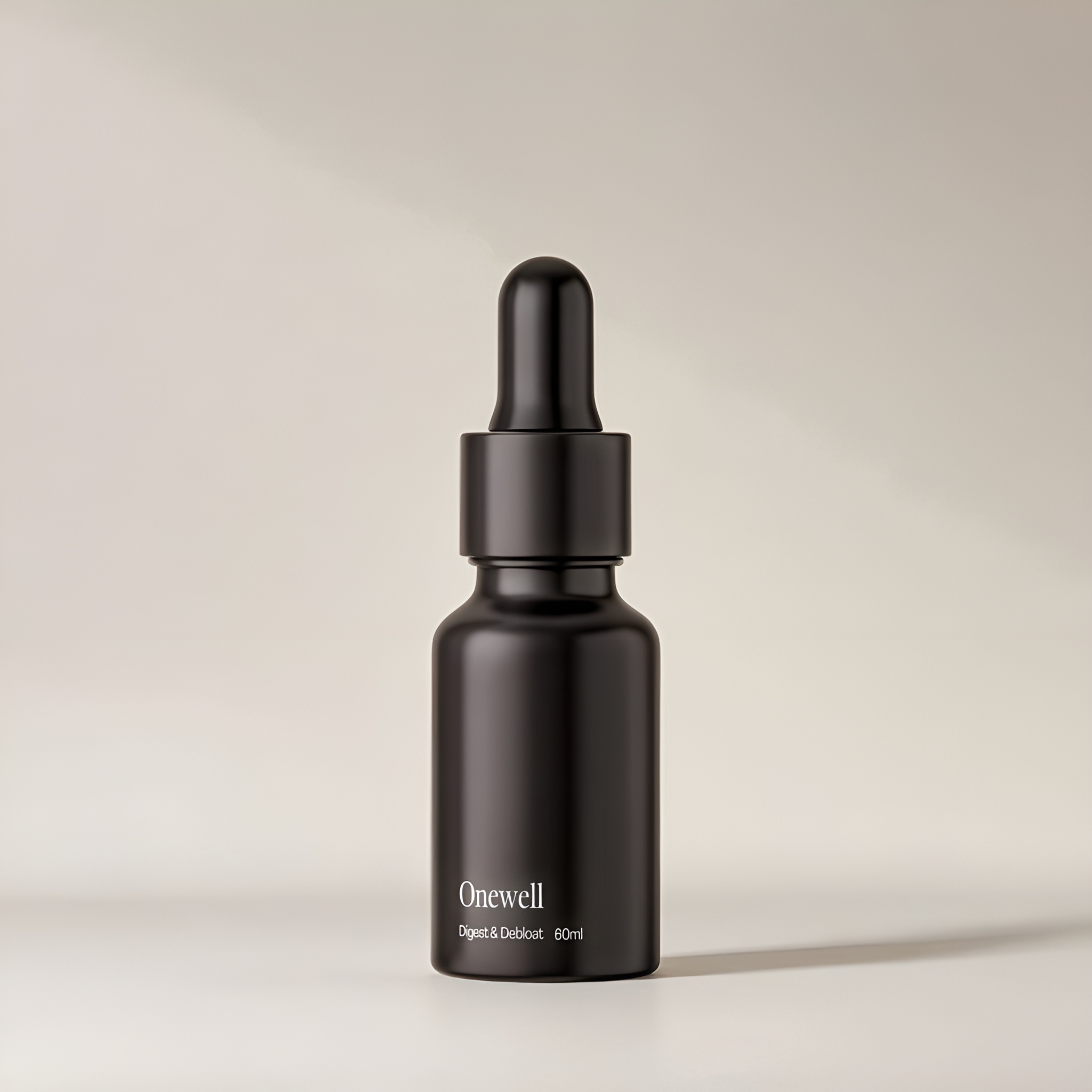 Take 5–10 drops directly on your tongue after eating or whenever you feel bloated.
